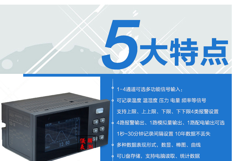 SIN-R200D系列无纸记录仪可自由组态输入标准电流、标准电压、热电偶、热电阻、频率等信号,可实现为传感器配电和继电器报警输出,并且可通过U盘或通讯方式与上位机进行数据交换。